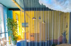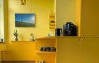 L'espace vous accueille avec un salon confortable et une cuisine ensoleillée attenante où l'on sert un excellent café.